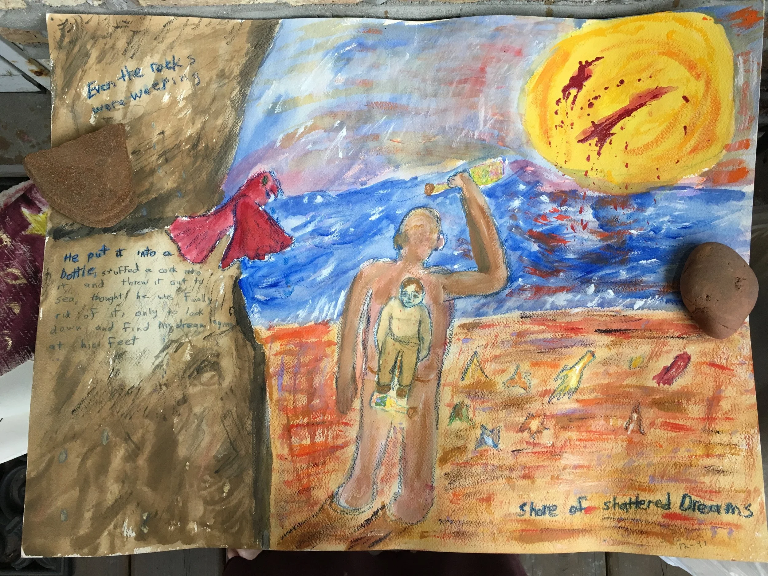 He put it into a bottle, stuffed a cork into it, and threw it out to sea, thought he was finally rid of it, only to look down and find his dream laying at his feet.